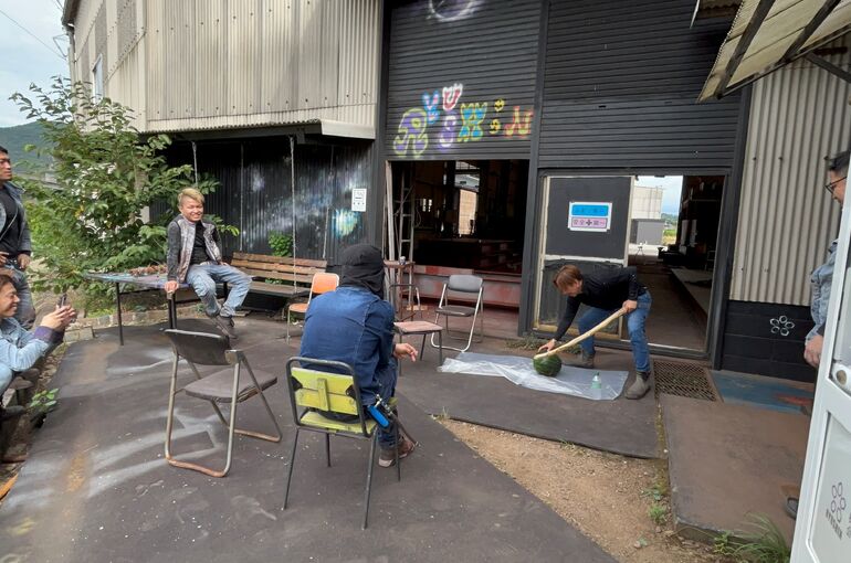 7月の終わりに会社の皆さんとスイカ割をしました🍉