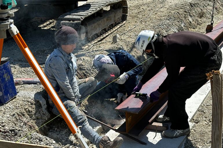 ということで、社長自ら溶接でH鋼を設置していきます