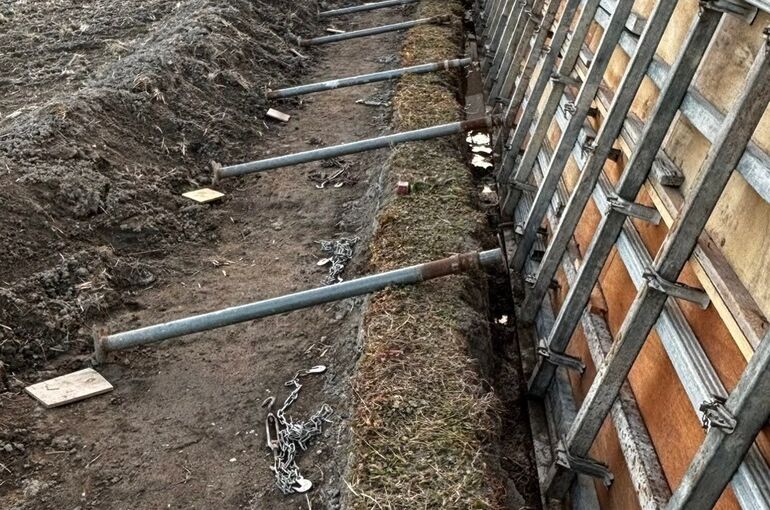 型枠にコンクリートを流し込んで、壁が出来上がります