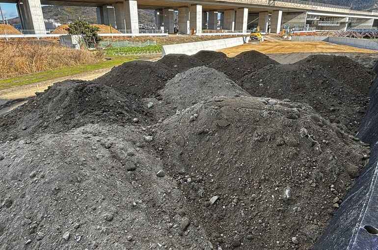 工場とのレベルを合わせる盛土のための土がどんどん運ばれてきます